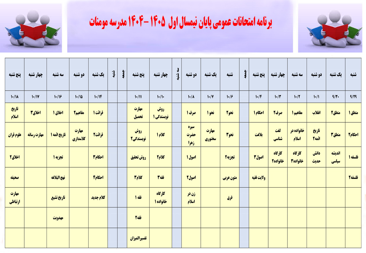 برنامه امتحانات نیمسال اول 1405-1404